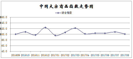 由中國物流與采購聯合會調查、發布的2017年8月份中國大宗商品指數為100.4%,升幅較7月份收窄8.0個百分點,但該指數已連續七個月呈現上升態勢,表明國內大宗商品市場平穩增長的基礎已基本確立。各分項指數中,供應指數和庫存指數繼續上升,但升幅有所收窄,銷售指數則出現回落。表明當前市場供應仍在增加,需求受季節性因素影響有所回落,但庫存并未現明顯積壓,產銷銜接基本正常,市場運行較為平穩。