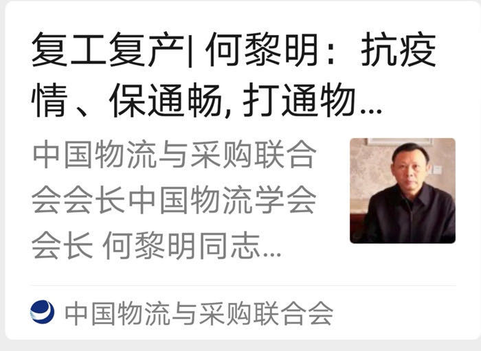 中國物流與采購聯合會對湖北物流行業的抗疫保供、復工復產行動,給予充分肯定。