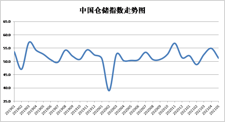 中國物流與采購聯(lián)合會和中儲發(fā)展股份有限公司聯(lián)合調(diào)查的中國倉儲指數(shù),2021年5月份為51.3%,較上月回落3.7個百分點。新訂單、業(yè)務量、期末庫存、平均庫存周轉(zhuǎn)次數(shù)等主要分項指數(shù)均有明顯回落,但仍保持在榮枯線以上,表明行業(yè)整體仍保持平穩(wěn)向好發(fā)展態(tài)勢。從分項指數(shù)變化情況來看,有以下幾個特點: