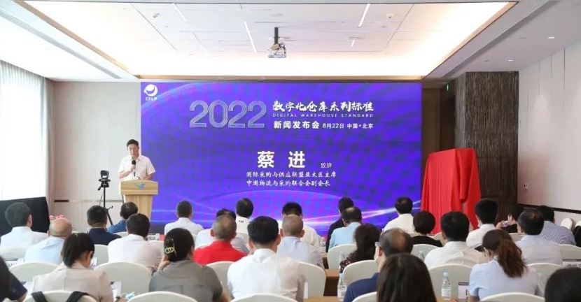 2022年8月22日下午,在全國物流標準化技術(shù)委員會指導下,由中國物流與采購聯(lián)合會主辦,中國物流采購聯(lián)合會物聯(lián)網(wǎng)技術(shù)與應用專業(yè)委員會承辦的“數(shù)字化倉庫系列行業(yè)標準頒布新聞發(fā)布會”在北京召開。中國物流與采購聯(lián)合會副會長蔡進出席并講話。