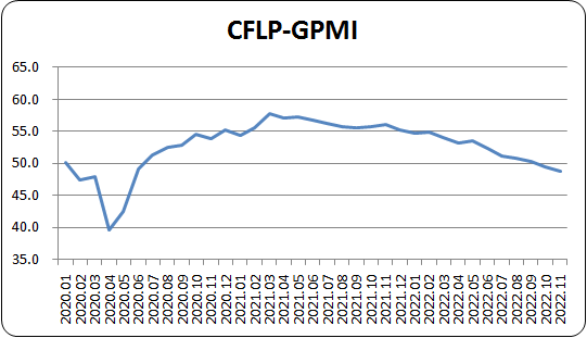 2022年11月份,美洲制造業PMI為48.8%,較上月下降1.3個百分點,連續6個月環比下降,自2020年6月以來,首次降至50%以下。主要國家數據顯示,美國和巴西制造業PMI較上月均有不同程度下降,且均降至50%以下;加拿大制造業較上月有所上升,但指數仍在在50%以下,墨西哥制造業較上月上升,指數在50%以上。