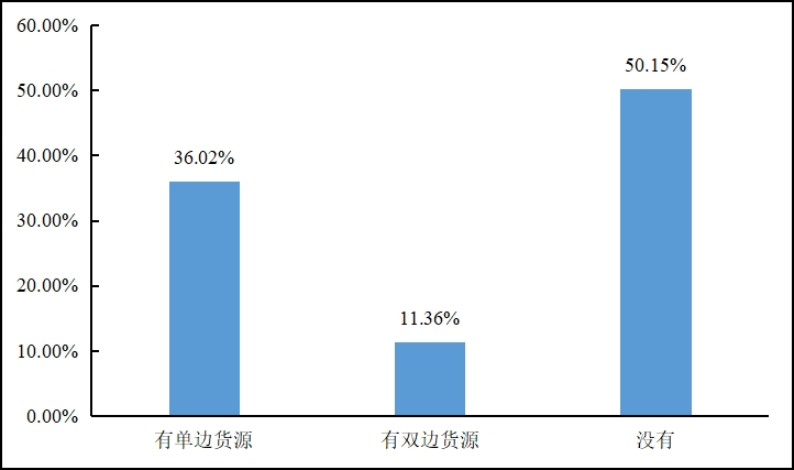 調查數據顯示,一半以上(50.15%)貨車司機表示沒有穩定的貨源;36.02%的貨車司機有單邊穩定貨源;僅有11.36%的貨車司機有雙邊穩定貨源。在沒有穩定貨源的司機中,79.86%為自有車輛。其中60.68%的自有車輛仍在還貸過程中,84.87 %為個體司機。在雙邊穩定貨源的司機中,接近一半(48.7%)的司機為受雇司機,說明組織化的企業貨源相對穩定。