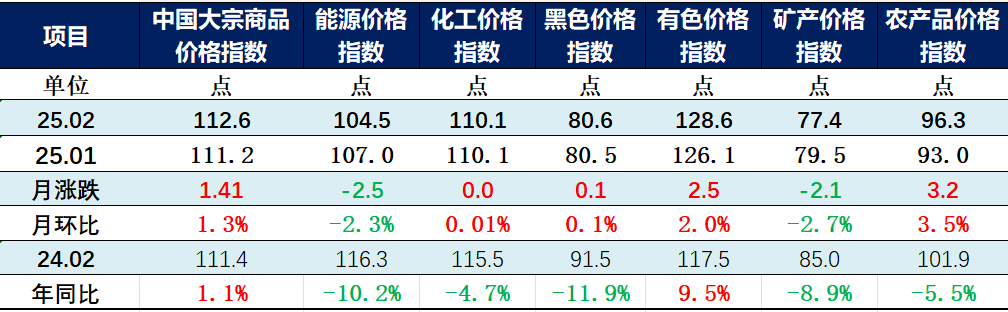 - 2025年2月中國大宗商品價(jià)格指數(shù)(CBPI)為112.6點(diǎn),環(huán)比上漲1.3%