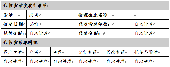 3.1.3.6.2代收貨款發(fā)放確認單、代收貨款拒付申請單
