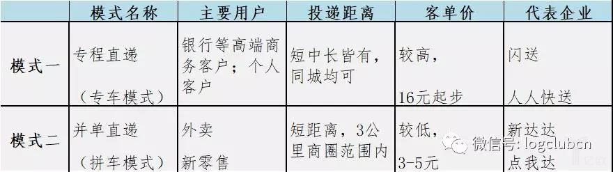 “眾包即時直遞”可細分為兩種模式,一種為“專程直遞”模式,一種為“并單直遞”模式,區(qū)別見下表。