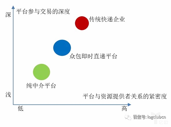 因此,從平臺參與交易的深度,平臺與資源提供者關系的緊密程度兩個維度看,眾包即時直遞平臺介于純中介平臺和傳統(tǒng)快遞企業(yè)之間。