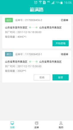 平臺車隊所屬的駕駛員注冊登錄箱滿路手機APP之后,就可以在線接受車隊下發的運單,改變了傳統的通過電話、傳真、短信等線下方式進行陸運派車的行業傳統,手機APP成為匯集查閱運輸任務、運單詳情、節點反饋、積分評價等功能的新工具。司機端手機APP最大的好處是實現了業務流程標準化,不再需要熟悉任何流程,操作簡單方便。