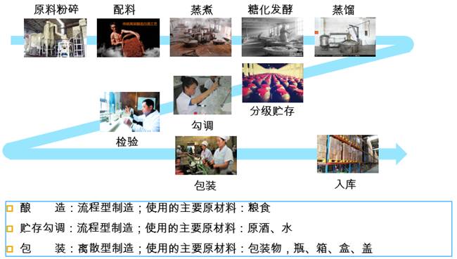 生產(chǎn)工藝主要分為:釀造、勾兌和包裝。