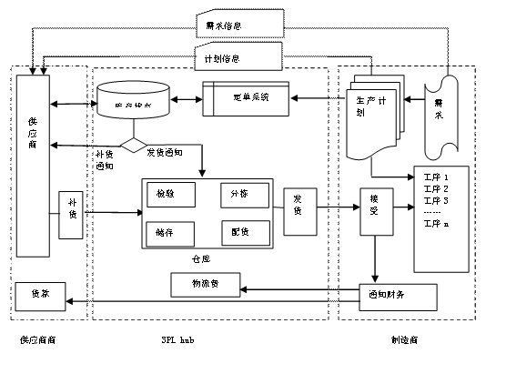 (8)3PL在接受到供應(yīng)商的補(bǔ)貨計(jì)劃后,做好接受準(zhǔn)備,在原材料和零部件到達(dá)時(shí),在制造商的授權(quán)下進(jìn)行一些簡(jiǎn)單的檢查工作,并安排儲(chǔ)位進(jìn)行入庫(kù)工作。