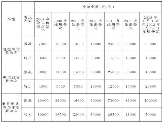 與此同時,“通知”明確了各類不同車型報廢的補貼政策。“通知”規定,本次高排放老舊柴油貨運車是指,2013年7月1日(不含)以前在北京市注冊登記的柴油貨運車(包括輕型載貨柴油車、中型載貨柴油車和重型載貨、重型牽引柴油車,不含黃標車)。補貼期限分為三個階段:第一階段為2017年9月21日起至2018年6月30日,在此期間報廢或轉出車輛獲得的補貼最多,補貼額度最高可獲得補貼10萬元,這也是目前國內可獲得的淘汰老舊車輛最高的補貼額度;第二個階段為2018年7月1日至2018年12月31日;第三個階段為2019年1月1日至2019年9月20日。后兩個階段補貼標準,分別較第一階段下調20%和40%。