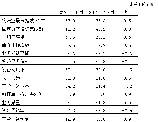2017年11月份福建省物流業景氣指數(LPI)為55.8%