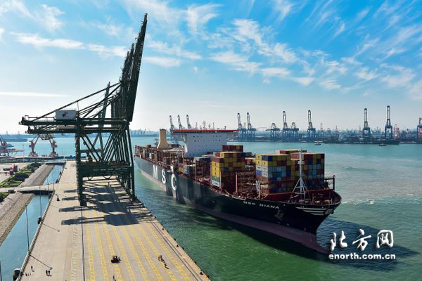 天津港是我國北方重要的對外貿易口岸,也是國家集裝箱運輸發展的搖籃。1981年1月1日,全國第一個集裝箱專用碼頭在這里建成投產。2017年,天津港完成集裝箱吞吐量超過1500萬標準箱,世界排名第十位;今年第一季度吞吐集裝箱突破360萬標箱,實現同比增長7.5%。