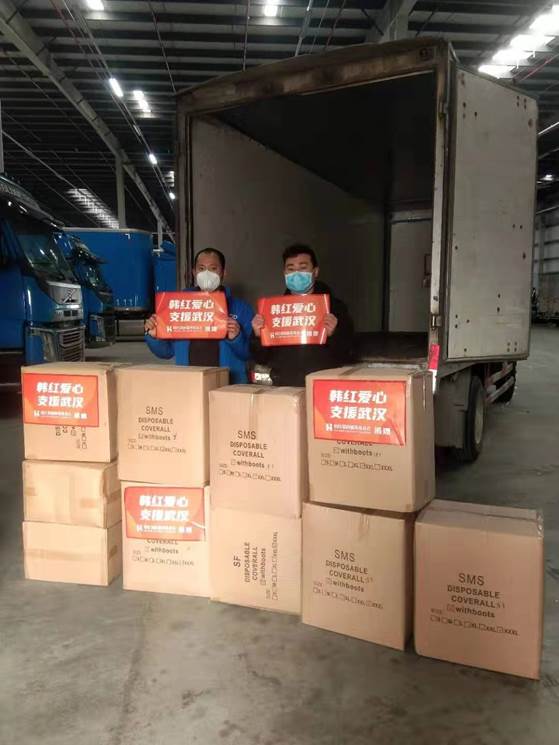 事跡二、新型冠狀病毒疫情發(fā)生后,韓紅愛心慈善基金會即刻行動,采購了大量醫(yī)療物資運往武漢及周邊城市。中通快遞武漢轉運中心將原有的快遞出港車間改造為臨時倉庫,為其中的防護服、洗手液、衛(wèi)生濕巾等物資提供倉儲管理,并協(xié)助基金會對醫(yī)療物資進行分發(fā)。