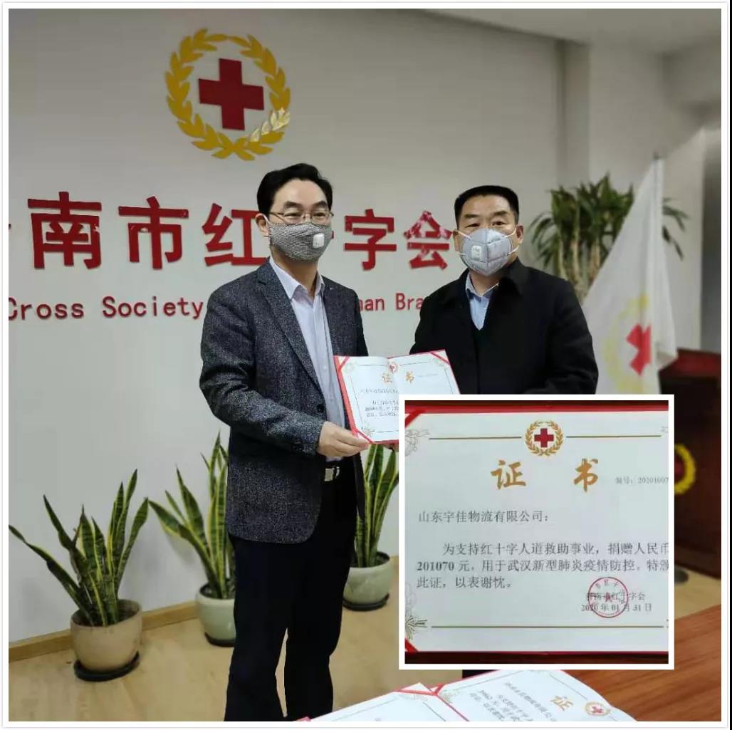 1月29日,平臺重要合作伙伴山東宇佳物流在全公司上下發起了愛心抗疫募捐倡議書。董事長李興保先生攜夫人,率先捐款四萬元,宇佳物流陽光基金會捐款三萬元,宇佳物流公司各高管、站點經理以及員工近四百余人紛紛響應,共捐款20余萬元全部交到濟南市紅十字會手中,用作抗擊武漢疫情,購買醫療、防護物資。