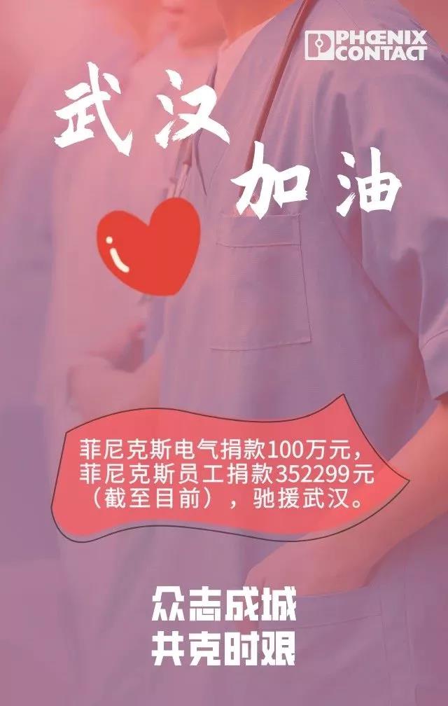 菲尼克斯電氣捐款100萬元,定向捐贈至華中科技大學同濟醫學院附屬同濟醫院和協和醫院,用于馳援武漢當地疫情防控和醫療救助。