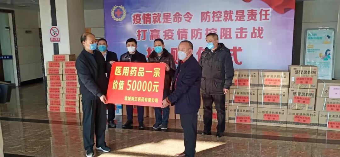 面對疫情到來,諸城海王醫藥全體干部職工一直關注疫情的最新進展,并深知企業應該承擔的責任,希望為醫院醫護工作者防控工作貢獻力量,全力支持醫護工作者應對新型冠狀病毒感染的肺炎疫情工作,早日戰勝疫情,保衛人民群眾的健康和生命安全。本次捐贈諸城海王醫藥共捐贈疫情相關藥品價值50000余元,口罩11600副。