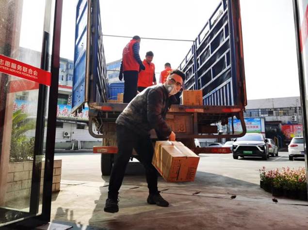 28日一早,王琛便趕到馬鞍山市政府及相關(guān)管理部門(mén)協(xié)助司機(jī)辦理應(yīng)急物資及人員運(yùn)輸車(chē)輛通行證,隨即又前往發(fā)貨現(xiàn)場(chǎng)協(xié)助物資裝車(chē)。當(dāng)貨物裝車(chē)完畢,司機(jī)做好防護(hù)整裝待發(fā)時(shí),王琛已經(jīng)累得直不起腰來(lái),大冷的天氣衣服內(nèi)外都濕透了。