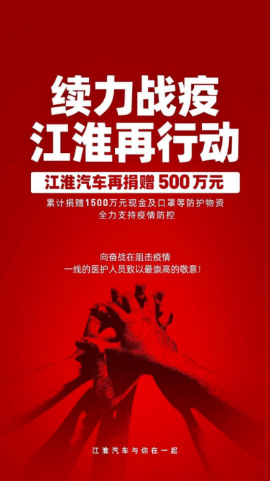疫情面前,沒有一個人是局外人。雖然汽車企業不能直接參與疫情救治工作,但他們排除萬難在各自擅長的領域拿出了實際行動,牢筑疫情防控最堅實的長城,集中展現了企業的高度社會責任感,用簡單而樸實的行為致敬每一位一線抗疫奮戰的“逆行者”。相信接下來,江淮商務車還會有更多動作,攜手大家一同贏得這場“戰疫”。