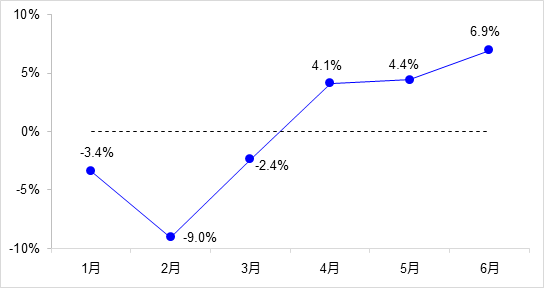 上半年,完成全社會貨運量198.7億噸,同比下降7.8%,二季度以來快速恢復(fù),5月、6月連續(xù)正增長,增速分別為0.4%和3.9%。分方式看,公路貨運量下降9.0%、水路貨運量下降8.0%。