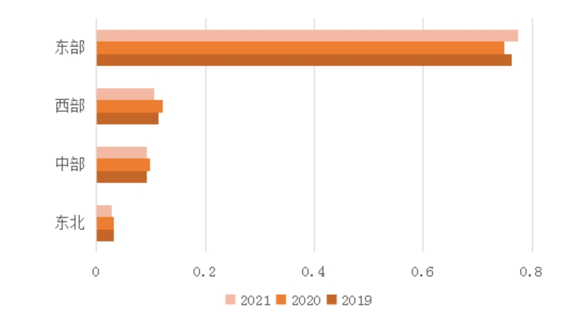此外,京東企業(yè)購數據顯示,65%以上的中小企業(yè)線上采購活躍用戶分布在經濟發(fā)展基礎相對較好的東部地區(qū),這一占比高于2018年的經濟普查數據,并且其采購成交額占全國總成交額的比重也達到77.3%,表明東部地區(qū)中小企業(yè)數字采購以及背后的數字化水平相對其他地區(qū)更高。