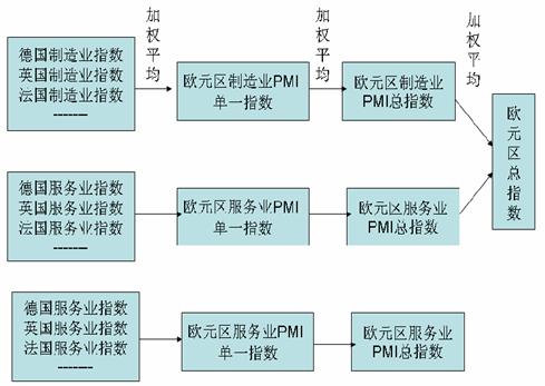 NTC集團在各國完成PMI調查基礎上,建立了歐元區PMI體系和歐元區PMI總指數。歐元區PMI總指數是在每個月定期調查超過5000個公司采購經理的基礎上完成的,各項指數計算方法與美國類似。該指數由歐元區制造業與服務業數據加權形成,權重是將歐元區作為一個整體,基于各國總產值對于歐元區經濟發展的相對重要性來進行計算。整個歐元區PMI體系包括6個指標:歐元區綜合生產指數、新訂單指數、雇員指數、采購品價格指數、積壓訂單指數、產出品價格指數。