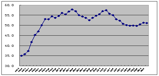 2009年1月-2012年2月全球制造業PMI指數走勢