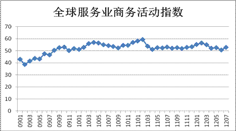 2009年1月—2012年7月全球服務業中間投入價格指數